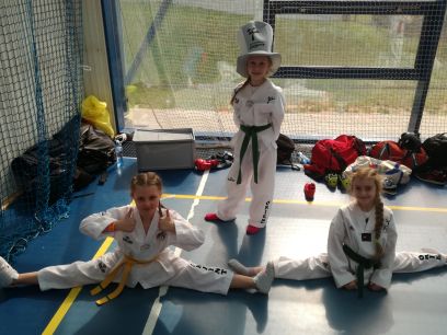 BRONTOZAURY drużyna łączona z TKD Powiat Kłobucki (Natalia Oparczyk, Maja Telęga, Oliwia Kołodziejczyk) – 2 miejsce młodziczki tag team touch contact +145 cm, 3 miejsce młodziczki tempówki (touch) +145 cm (poza rankingiem)