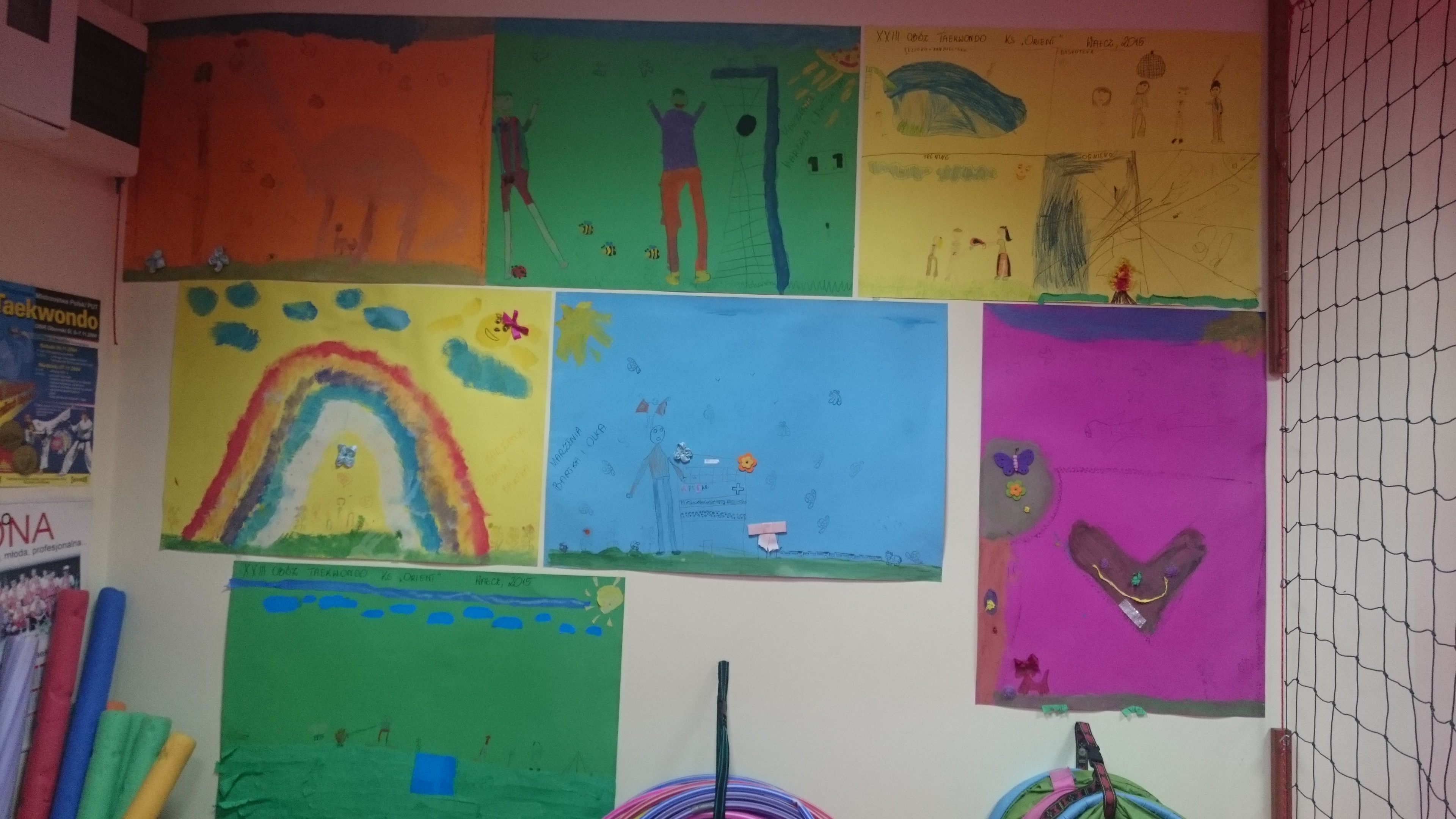 Mamy kącik przygotowany specjalnie dla najmłodszych zawodników, a w nim ścianę z pamiątkowymi plakatami z zawodów ogólnopolskich i międzynarodowych oraz ścianę przeznaczoną na kolorowe rysunki – wspomnienia naszych małych ninja.