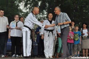 Nasi zawodnicy wykonali pokazy na obu imprezach- zaprezentowali podstawowe ćwiczenia treningowe oraz typowo pokazowe elementy, takie jak rozbicia desek, balonów itp.