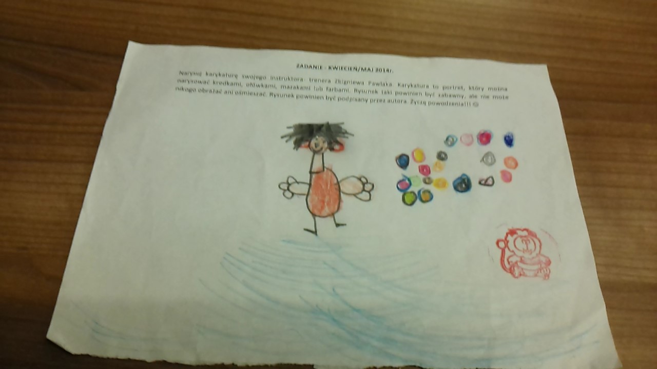 W przypływie letniej weny twórczej zawodnicy najmłodszej grupy trenującej w Częstochowie zaprezentowali postać trenera Zbigniewa Pawlaka według swojego wyobrażenia :)