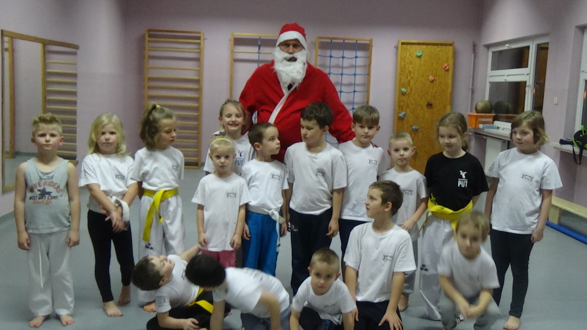 Na trening w Będzinie zawitał św. Mikołaj we własnej osobie. Wszyscy zawodnicy, ponieważ cały rok systematycznie trenowali, otrzymali słodkie drobiazgi :) Najodważniejsi zaprezentowali się artystycznie przed św. Mikołajem :)