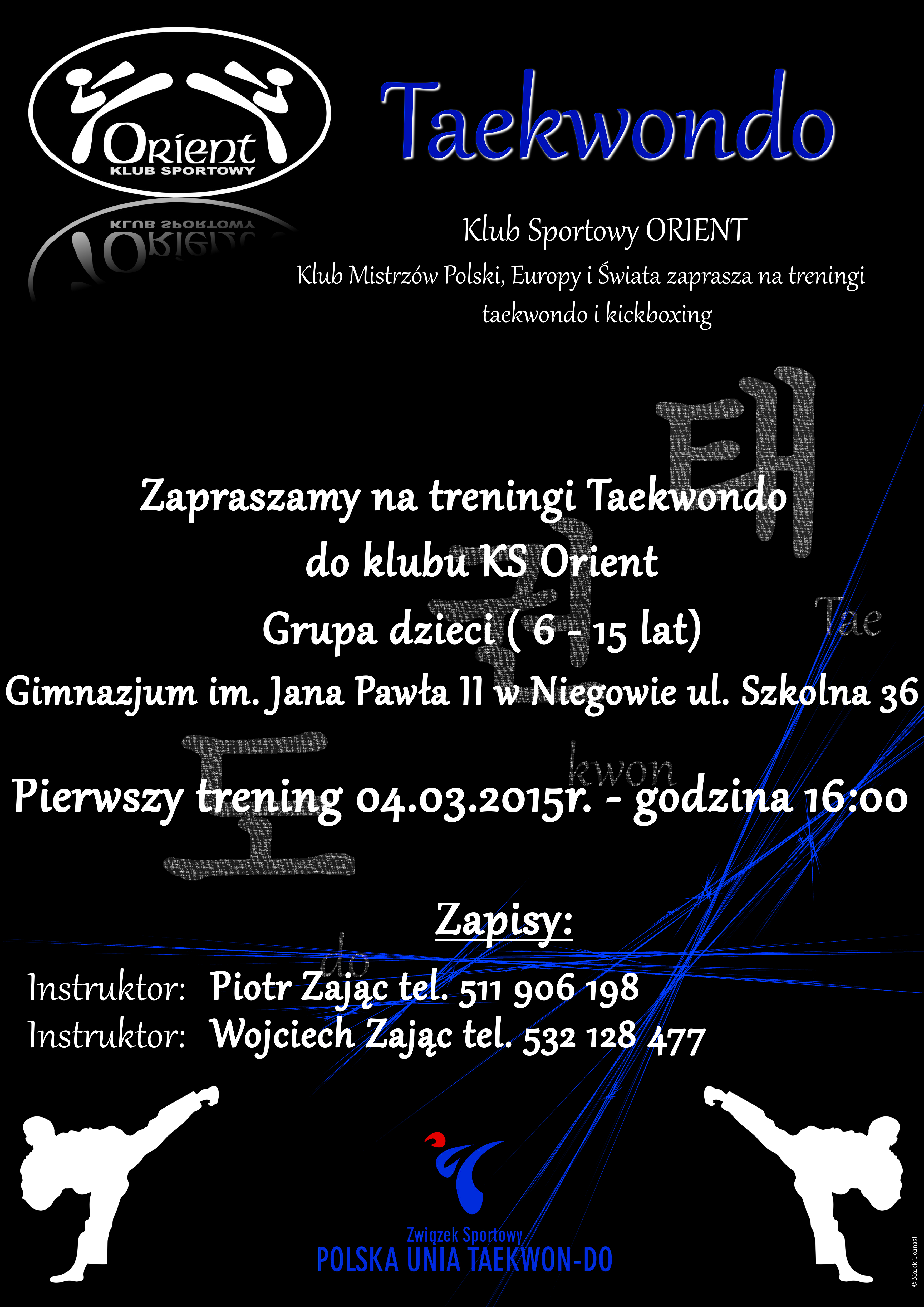 Zapraszamy na treningi do nowej sekcji KS ORIENT w Niegowie. Pierwszy trening już 4 marca.
