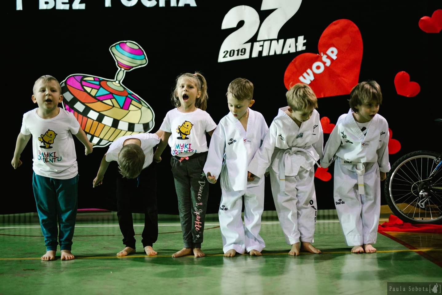 14 zawodników i zawodniczek sekcji z Zawiercia wystąpiło podczas 27. finału WOŚP w Zawierciu. Pokaz przygotował i poprowadził instruktor Karol Marcisz.