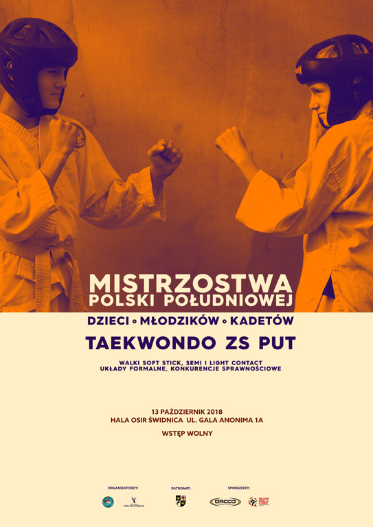 Zachęcamy wszystkie dzieci, młodzików i kadetów (zawodnicy od 6 do 15 lat) do wzięcia udziału w Mistrzostwach Polski Południowej w Taekwon-do ZS PUT, które odbędą się 13 października w Świdnicy.