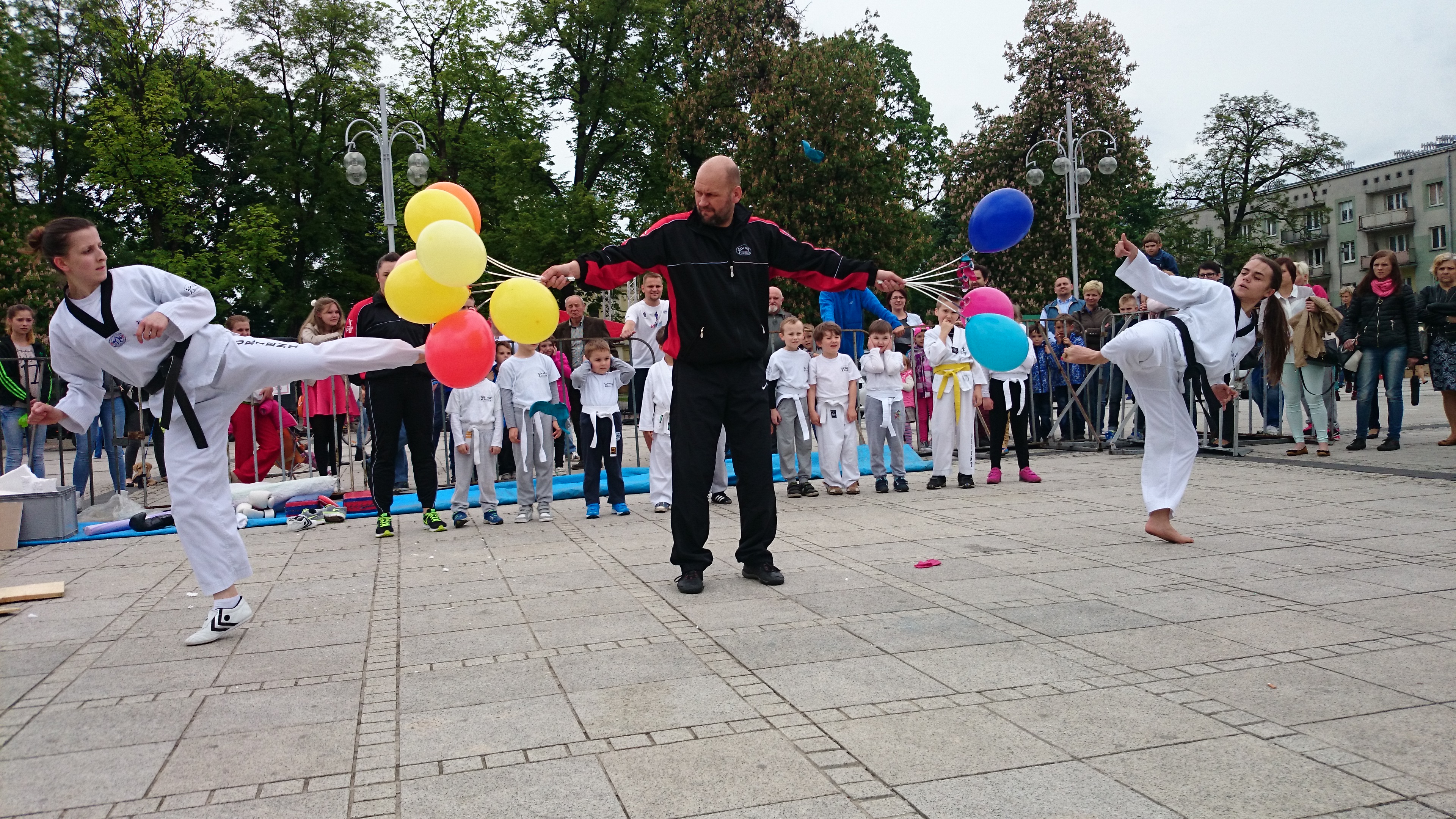 Nasi najmłodsi zawodnicy (4-7 lat) wspierani przez starsze koleżanki zaprezentowali podstawowe techniki taekwondo, walki soft stick i semi contact oraz elementy rozbić styropianów, kartongipsów, desek i balonów.
