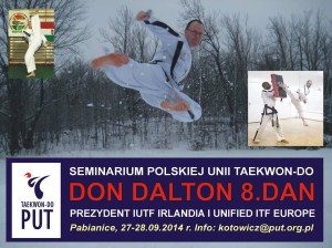 Już teraz zapowiadamy, że w ostatni weekend września, tj. 27-29 września, w Pabianicach odbędzie się seminarium z Mistrzem Don Dalton 8 Dan, Prezydentem IUTF Irlandia i Unified ITF Europe. Organizatorem imprezy jest Polska Unia Taekwondo. Seminarium skierowane jest do zawodników powyżej 12. roku życia ze wszystkich sekcji naszego klubu. O szczegółach seminarium oraz dokładnych warunkach udziału poinformujemy niebawem.